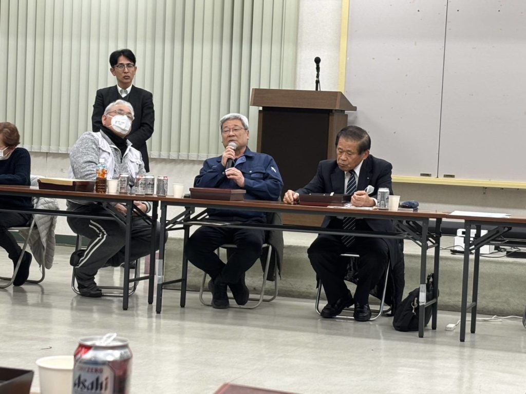 最後に片山会長は、国際情勢や沖縄の選挙情勢に触れ、「戦争か平和かが大きく問われる一年。全会員で組織拡大と政治を語り、春の運動で大きく前進しよう」と呼びかけ、参加者全員で団結を確認しました。